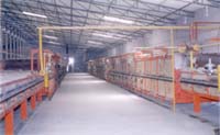 The stored powder is pressed in the High pressure Hydraulic Press. The capacity of Hydraulic Press is 1200 matric ton. This is the first time in India in Wall Luster Tiles This is where the Biscuits are shaped as per the dies fitted onto the press. |